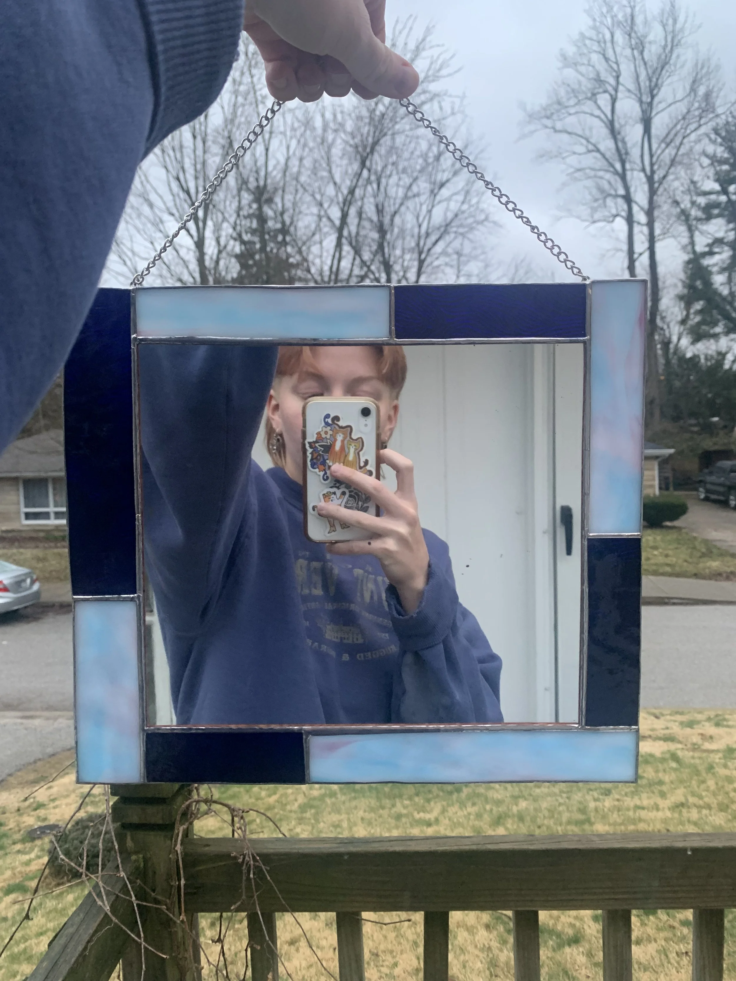 Blue bordered mirror
